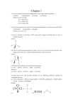 Chapter 1 1.1 Give the ground-state electron configuration for each of the following elements: (a) Boron (b) Phosphorus (c) Oxygen (d) Chlorine 2 2 1 Solution: (a). B: 1s 2s 2p (b). P: [Ne] 3s23p3 (c). O: [He] 2s22p4 (d). Cl: [Ne] 3s23p5 1.2 How many electrons does each of the following elements have in its outermost electron shell? (a) Potassium (b) Aluminum (c) Krypton Solution: (a) 1 (b) 3 (c) 8 1.3 Draw a molecule of chloroform, CHCl3, using solid, wedged, and dashed lines to show its tetrahedral geometry. Solution: H C Cl Cl Cl 1.4 Convert the following representation of ethane, C2H6, into a conventional drawing that uses solid, wedged, and dashed lines to indicate tetrahedral geometry around each carbon. Solution: H C H H H H C H 1.5 What are likely formulas for the following substances? (a) GeCl? (b)AlH? (c)CH?Cl2 (d)SiF? (e)CH3NH? Solution: (a) GeCl4 (b)AlH3 (c)CH2Cl2 (d)SiF4 (e)CH3NH2 1.6 Write both Lewis and line-bond structures for the following substances, showing all nonbonding electrons: (a) CHCl3, chloroform (b)H2S, hydrogen sulfide (c)CH3NH2, methylamine (d)NaH, sodium hydride (e)CH3Li, methyllithium Solution: Cl Cl Cl C Cl H H (a) Cl Cl HSH (b) S H H HH HCNH H H (c) H Li CH H (e) H H C N H H (d) Na H Na H H H Li H 1.7 Why can’t an organic molecular have the formula C2H7? Solution C2H7 has too many hydrogens for a compound with two carbons. 1.8 Draw a line-bond structure for propane, CH3CH2CH3. Predict the value of each bond angle, and indicate the overall shape of the molecular Solution H H H H H H C H C C C H C C H H H H H H H H 1.9 Convert the following molecular model of hexane, a component of gasoline, into a line-bond structure (gray = C, blue = H). Solution: H H H H H H H C C C C C C H H H H H H H 1.10 Draw a line-bond structure for propene, H3CHC carbon, and predict the value of each bond angle. Solution: CH 2, indicate the hybridization of each The carbon is sp3, and the angle of H-C-H is 109。 28' The angle is 120。 The angle is 120。 H3C H The carbon is sp2, and the angle is 120。 H C C The carbon is sp2 , and the angle is 120。 The angle is 120。H The angle is 120。 1.11 Draw a line-bond structure for 1,3-butadiene , H2 C CH CH hybridization of each carbon; and predict the value of each bond angle. CH2 ; indicate the Solution: H H C C H The line-bond structure for 1,3-butadiene is H C C H H. All of the four carbons are sp2 hybridization. Each bond angle for two neighboring bonds is 120o. 1.12 Draw both a Lewis structure and a line-bond structure for acetaldehyde , CH3CHO Solution: Lewis structure: H O HC C H H H O H C C H Line-bond structure : H 1.13 Show below is a molecular of aspirin (acetylsalicylic acid). Identify the hybridization of each carbon atom in aspirin, and tell which atoms have lone pairs of electrons (gray=C, red=O, green=H) Solution: O H3C C O HC C HC O C HC C CH OH All the carbons except CH3 are sp2 .CH 3 is sp3. All the O atoms have lone pairs of electrons. 1.14 Draw a line-bond structure for propyne,CH3C≡CH, indicate the hybridization of each carbon, and predict a value for each bond angle. Solution: H 3C C 1 2 CH 3 carbon 2, 3 are sp. carbon 1 is sp3. The bond angle between carbon 1 and 2 is about 180゜ . So is the bond angle between carbon 2 and 3. 1.15 Draw Lewis and line-bond structures for CH2NH. H H C Solution: structure N H There are 4 electrons shared in the bond. The N atom is sp2 hybridization. 1.16 What geometry do you expect for each of the atoms? Solution: The O atom in (a), N atom in (b) and P atom in (c) are sp3 hybridization. They all have roughly tetrahedral geometry. 1.17 Convert each of the following molecular models into a typical line-bond structure, and give the formula of each. Only the connections between atoms are shown; multiple bonds are not indicated (gray = C, red = O, blue = N, ivory = H). (a) CH3 H3 C Solution: C CH3 CH3 Its formula is C5H12. (b) H N Solution: H2 C C H2 CH3 Its formula is C8H17N. (c) NH2 OH CH H3C Solution: C O Its formula is C3H7NO2. 1.18 Shown below is a model of citric acid, the key substance in the so-called citric acid cycle by which food molecules are metabolized in the body. Only the connections between atoms are shown; multiple bonds are not indicated. Complete the structure by indicating the positions of multiple bonds and lone-pair electrons(gray = C, red = O, ivory = H). H O O H O O C O H C O Solution: C C H2 C C H2 H O 1.19 Shown below is a model of acetaminophen, a pain-reliever sold in drugstores as Tylenol. Identify the hybridization of each carbon atom in acetaminophen, and tell which atoms have lone pairs of electrons (gray=C, red=O, blue=N, light-blue=H). Solution: Except the carbon of the methyl is sp3 hybridized, the other carbons are all sp2 hybridized. And all of the two O and one N atoms have lone pairs of electrons. 1.20 Shown below is a model of aspartame, C14H18N2O5, known commercially as NutraSweet. Only the connections between atoms are shown; multiple bonds are not indicated. Complete the structure by indicating the positions of multiple bonds (gray=C, red=O, blue=N, light-blue=H). Solution: O O H N HO O O NH2 1.21 How many valence electrons does each of the following atoms have? (a) Calcium (b) Chlorine (c) Germanium Solution: (a) Calcium has 2 valence electrons (b) Chlorine has 7 valence electrons (d) Strontium (c) Germanium has 4 valence electrons (d) Strontium has 2 valence electrons 1.22 Give the ground-state electron configuration for each of the following elements: (a) Potassium (b) Sulfur 2 2 (c) Aluminum 6 2 6 Solution: (a) Potassium: 1s 2s 2p 3s 3p 4s (d) Bromine 1 (b) Sulfur: 1s2 2s2 2p6 3s2 3p4 (c) Aluminum: 1s2 2s2 2p6 3s2 3p1 (d) Bromine: 1s2 2s2 2p6 3s2 3p6 4s2 3d10 4p5 1.23 What are likely formulas for the following molecules? (a)CH?OH (b)AlCl? (c)CF2Cl? (d)NI? Solution: (a)CH3OH (b)AlCl3 (c)CF2Cl2 (d)NI3 1.24 Write a Lewis (electron-dot) structure for acetonitrile, C2H3N, which contains a carbon-nitrogen triple bond. How many electrons
