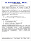 WELFARE ASSISTANCE PROGRAM BURIAL ASSISTANCE APPLICATION Kawerak Burial Assistance (BU) Program is an income based, last resort assistance program. BU offers basic BIA funeral and burial assistance. These services include (up to a $2,500 limit): preparation & embalming; provision for a cloth-covered casket with at least 4 handles & a padded & lined interior; one chapel service at vendor’s place of business; use of a hearse, use of other facilities & equipment for burial or cremation; if the casket and cross are going to be made, supplies may be purchased in your local community with staff approval. The family will be notified the determination, and if approved, a vendor payment to the mortuary/funeral home will be made appropriately. The family is responsible for taking care of all arrangements with the mortuary/funeral home and with the State Medical Examiners office if appropriate. If the deceased was receiving APA, ATAP or SSI, they must first apply first for General Relief Burial Assistance (GRA) through the State of Alaska, Public Assistance office at 1.800.478.2236 or 443.2237. Eligibility criteria: Be in a federally recognized tribe, Alaska Native or American Indian; Reside in the Bering Straits Region for the last consecutive 6 months; and Income eligible, not have enough resources to meet the essential needs. Documents required: A complete, signed Burial Application by family member; Tribal enrollment verification or BIA certification for the deceased; Proof of Bering Straits Region residency; Verification of all income for deceased, spouse, boyfriend/girlfriend; Proof from Hospital/Village Clinic of incident and date of death. Verification that you have applied for other assistance; and Release of information on behalf of the deceased The maximum payment for basic funeral and burial services shall not exceed $2,500.00 for each deceased person. Applications will be accepted from the surviving spouse or a relative responsible for making funeral home arrangements. If any person or organization pays for a more expensive burial than the minimum provided by this program for the deceased, authorization will not be made. Reasonable transportation costs will be considered in addition to the burial cost on a case by case basis. If the family requests assistance for a funeral feast or potlatch, a maximum of $400.00 may be authorized, which is not an addition to the $2,500.00 (i.e. if the $400 is provided for a funeral feast then the remaining $2,100 can be provided for the funeral cost). Burial Assistance funds do not cover the cost of transporting relatives to and from the community to attend the funeral. Kawerak Burial Assistance Programs are not automatic and are not an entitlement; you must apply for the assistance and provide all necessary documentation including income & tribal verification. Burial applications are processed immediately upon receipt of all required information. A release of information is required by Kawerak to contact other agencies for information. P.O. Box 948 ~ Nome, AK 99762 Web site: www.kawerak.org Ph: (907) 443.4370 ~1.800.478.5230 Fax: (907) 443.4455 ~ 1.877.824.4455 KAWERAK, INC. ~ Burial Assistance Application Education, Employment, and Training Division Welfare Assistance Department DECEASED INFORMATION Deceased Name: _________________________________________________________________________ Date____________________ (Last) (First) (MI) Maiden Name: _______________________________________ Nick Name: ______________________________________________ Social Security #: ________-________-___________ Date of Birth: ______/______/___________ Gender: Male Female Mailing Address: __________________________ (P.O. Box) ____________________________________ ________ _______________________ (City) (State) (Zip Code) Home Phone: (_____)______-_______ Message Phone: (_____)______-________ Veteran? No Yes, date of discharge: ____/_____/_____ Date of death: _______________________________________ APPLICANT INFORMATION Your Name:____________________________________________________ Relationship to Deceased: _____________________________ (Last) (First) (MI) Maiden Name: _____________________________________________ Your Social Security Number: - - Nick Name: ____________________________________________ Your Date of Birth: _______/______/_______ Your Present Mailing Address: _______________________________ (Street Address or P.O. Box) _________________________________ ______ ______________ (City) (State) (Zip Code) Home Phone:__________________ Work/Message Phone:______________________ Email:_____________________________________ Deceased household information: List all persons currently living in the deceased/spouse, boyfriend/girlfriend, children, grandparents, aunts/uncles, etc.). Full Legal Name Relationship DOB SSN deceased Marital Status household (example: Tribe deceased BURIAL INFORMATION Is another person or organization paying for any portion of this burial with money or resources other than that of the deceased? No Yes If yes, by whom? Name: ___________________________________________________________ Amount: $____________ Expected date of funeral: ____________________________ Place of funeral: ____________________________________ Name of Mortuary/Funeral Home: __________________________________________________________________________ Funeral Home Contact Person: ____________________________________ Phone #: _____________________________ Was the deceased medevaced by the hospital/clinic? No Yes- If yes, provide hospital/case manager contact info: Name: ____________________________________________________Phone: _______________________ Revised 04/09 Burial Assistance Application Page 2 of 5 P.O. Box 948 ~ Nome, AK 99762 Web site: www.kawerak.org Ph: (907) 443.4370 ~1.800.478.5230 Fax: (907) 443.4455 ~ 1.877.824.4455 KAWERAK, INC. ~ Burial Assistance Application Education, Employment, and Training Division Welfare Assistance Department FAMILY INCOME AND AVAILABLE FUNDS L