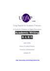 Academic Writing 英文寫作 http://www.uefap.com/writing/writfram.htm 1 Table of Contents 1. Writing Paragraph A. Introduction 5 B. Topic 6 C. Flow 8 D. Signaling 10 E. Cohesion 26 F. Exercises (1-17) 31 G. Test 58 4 2. Rhetorical Functions A. Writing Descriptions 61 B. Narrating and Reporting 67 C. Defining 74 D. Writing Instructions 75 E. Describing Function 80 F. Describing Processes 84 G. Classifying Categorizing 92 H. Giving Examples 95 I. Including Charts and Diagrams J. Comparison and Contrast 107 K. Generalizing 110 L. Expressing Degrees of Certainty M. Cause and Effect 113 N. Taking a Stance 117 O. Arguing and Discussing 119 P. Drawing Conclusions 124 Q. Online Exercises 126 60 97 112 3. Accuracy in EAP A. Introduction (Pretest) 131 B. Improving Your Sentence Structure 139 C. Sentence Structure Exercises (Online) 149 D. Proof-reading Written English 151 E. Proof-reading: Verbs 153 F. Proof-reading: Prepositions 158 129 G. Proof-reading: Word Order 159 H. Proof-reading: Nouns 161 I. Proof-reading: Adjective/Adverb 162 J. Proof-reading: Articles 163 K. More about Articles 165 L. Proof-reading: Spelling 170 M. Proof-reading: Punctuation 174 N. Proof-reading: Correct Word or Form of Word O. Online Exercises 184 P. Test 186 183 Writing paragraphs Introduction | Topic | Flow | Signalling | Cohesion | Exercises | Test 4 Paragraphs 第 1 頁,共 1 頁 Writing paragraphs Introduction Essays are divided into paragraphs. If your essay is one continuous piece of text, it will be very difficult for any reader to follow your argument. Therefore essays need paragraphs. Essays are divided into paragraphs in a meaningful way. A paragraph is a group of sentences that develop one topic or idea. The topic of one paragraph should follow logically from the topic of the last paragraph and should lead on to the topic of the next paragraph. The paragraphs have different functions, but all develop an idea - that is, they add information, explanation, examples and illustrations to the central theme or idea until the theme is fully developed. Try these exercises: Exercise 1 & Exercise 2 ^ Continue to: Topic Flow Signalling 5 http://www.uefap.com/writing/parag/parag.htm 2008/7/8 Paragraphs Writing paragraphs Topic sentences This main idea of each paragraph is usually expressed somewhere in the paragraph by one sentence (the main or topic sentence). This sentence is usually found at the beginning of the paragraph, but can come at the end or even in the middle of the paragraph. The rest of the paragraph generally expands the theme contained in the main sentence, and each idea round the main theme is supported by information and evidence (in the form of illustrations and examples), and by argument. Examples The population as a whole was unevenly distributed. The north was particularly thinly settled and the east densely populated, but even in counties like Warwickshire where there were substantial populations, some woodland areas were sparsely peopled. There was already relatively dense settlement in the prime arable areas of the country like Norfolk, Suffolk and Leicestershire. Modern estimates of England's total population, extrapolated from Domesday patterns, vary between 1 and 3 million. (Asa Briggs, (1983). A social history of England, p. 58) Atoms of all elements consist of a central nucleus surrounded by a "cloud" containing one or more electrons. The electrons can be thought of as occupying a series of well-defined shells. The behaviour of a particular element depends largely on the number of electrons in its outermost shells. Other factors, such as the total number of electron shells, also play a part in determining behaviour but it is the dominance of the outer electron configuration that underlies the periodic law and justifies the grouping of the elements into groups or families. (The sciences: Michael Beazley Encyclopaedias (1980), p. 118) In general, Victorian families were big. In 1851 their average size was 4.7, roughly the same as it had been in the seventeenth century, but the 11⁄2 million couples who married during the 1860s, which the historian G. M. Young described as the best 6 http://www.uefap.com/writing/parag/partopic.htm 第 1 頁 / 共 2 2008/9/8 上午 04:11:40 Paragraphs decade in English history to have been brought up in, raised the figure to 6.2. Only one out of eight families had one or two children, while one in six had ten or more, so that the counsel 'little children should be seen and not heard' was prudent rather than simply authoritarian advice. (Asa Briggs, (1983). A social history of England, p. 244) The spoken word (whether conversation or oratory or the coy mixture of the two which is now familiar to us on television) is a very different thing from the written word. What is effective or allowable or desirable in the one may be quite the reverse in the other, and the extempore speaker cannot correct himself by revision as the writer can and should. It is therefore not fair to take a report of a speech or of an oral statement and criticise it as if it were a piece of considered writing. (Ernest Gowers, (1973) The complete plain words, p. 26) Identifying topic sentences Look at the structure of the following paragraph. Education This is a period when education faces many disturbing circumstances originating outside itself. Budgets have been drastically cut throughout the country affecting every type of education. Enrolments are dropping rapidly, because the children of the post-World War II "baby boom" have now completed their schooling, and we are feeling the full effect of the falling birth rate. So there are fewer opportunities for new teachers, and the average age of teachers is increasing. (Carl Rogers, (1969), Freedom to learn, p. 11.) Exercise 3, Exercise 4, Exercise 5, Exercise 6 & Exercise 7 ^ 7 http://www.uefap.com/writing/parag/partopic.htm 第 2 頁 / 共 2 2008/9/8 上午 04:11:40 Paragraphs 第 1 頁,共 2 頁 Writing paragraphs Flow of information in p