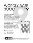WORDLY WISE 3OOO 9 9 Book Kenneth Hodkinson, Sandra Adams Recommended for grade 12 Wordly Wise 3000, Book 9, the last in the popular series of twelve Wordly Wise 3000 vocabulary books (A,B, C and 1-9), uses carefully selected words from literature, textbooks, and SAT-prep books. Each 15 word lesson begins with an alphabetized Word List. Pronunciation, parts of speech, and concise definitions appear in the opening pages.Student instruction is given through reading, writing, analogies, and a variety of challenging exercises. Use this sample of Lesson 7 from Book 9 with your students to discover the many benefits of the Wordly Wise 3000 vocabulary series. For your convenience, we’ve included an Order Form that can be used to purchase books in the Wordly Wise 3000 series. Three easy ways to order: Toll free: Fax: Online: 800.225.5750 888.440.BOOK (2665) www.epsbooks.com E D U C AT O R S P U B L I S H I N G S E R V I C E Lesson 7 Word List abjure ab jÌrV amorphous E mo$rV fEs animus Wordly Wise 3000, Book 9. Copyright ©2003 by Educators Publishing Service. Permission is granted to reproduce this page. www.epsbooks.com aV nE mEs dichotomy dâ ka·V tE me exemplar ig zemV pla·r herculean h¨r kyE le@V En inchoate in ko@V Et invidious in viV de@ Es mélange ma@ la·nÈV nefarious ni farV e@ Es nihilism nâV E li zem ratify raV tE fâ subsume sEb sÌbmV 62 Study the definitions of the words below; then do the exercises for the lesson. v. To renounce formally. [Galileo was forced by the Catholic Church to abjure his belief that the earth circled the sun.] adj. Without a definite shape, boundary, or character. [The amoeba’s lack of a fixed structure gives it an amorphous shape.] n. 1. An attitude or spirit within a person that strongly influences him or her. [A thoughtful reader will feel the animus that motivated Charlotte Brontë to write Villette.] 2. Deep-seated ill will. [The animus between Serbs and Bosnians erupted into internecine war in the 1990s.] n. Division into two distinct parts or groups. [She argues that moral relativism blurs the dichotomy between good and evil.] n. An example or model, especially an ideal one. [Mahatma Gandhi was the exemplar of nonviolent resistance to injustice.] exemplary adj. adj. Of extraordinary size, power, or difficulty. [Plowing the city streets after the blizzard of 1996 was a herculean task.] adj. Not fully formed or realized. [Writers of fiction often explain that their inchoate ideas take shape as they write their novels.] adj. Likely to cause resentment or animosity. [The labor leader recited invidious facts about the company’s lack of benefits for its employees.] n. A mixture of dissimilar materials. [The garage sale was a mélange of clothes, furniture, and household bric-a-brac.] adj. Very wicked. [The nefarious practice of enforced child labor is rampant in many poor countries.] n. A viewpoint that denies any meaning or value to life. [His cynicism was so extreme that it bordered on nihilism.] nihilistic adj. v. To approve, confirm, or verify. [In a citywide referendum, voters ratified the ban on smoking in restaurants.] v. To encompass in a larger or more comprehensive group; to include. [In 1939, the work of other nuclear physicists was subsumed under the theory of fission proposed by Lise Meitner and Otto Frisch.] Wordly Wise 3000: Book 9 variegated verV e@ E ga@ tEd vitiate viV ìe@ a@t adj. Varied as to form, type, or color. [The variegated leaves had stripes of green and white.] v. To impair or weaken. [Questionable sincerity vitiated her appeal for another chance.] Wordly Wise 3000, Book 9. Copyright ©2003 by Educators Publishing Service. Permission is granted to reproduce this page. www.epsbooks.com 7A Understanding Meanings ■ 1. 2. 3. 4. 5. 63 Read the sentences in each group below. If a sentence correctly uses the word in boldface, write C on the line of the corresponding number below the group. If a sentence is incorrect, rewrite it so that the vocabulary word in boldface is used correctly. A nefarious scheme is one that is detestable. To vitiate something is to give it renewed life or appeal. An exemplary student is one who serves as a good example to others. Nihilism is a doctrine that holds all life to be senseless and meaningless. An amorphous object is one that is of great size. 1. ________________________________________________________________________________ 2. ________________________________________________________________________________ 3. ________________________________________________________________________________ 4. ________________________________________________________________________________ 5. ________________________________________________________________________________ ■ 6. 7. 8. 9. 10. Animus is a strong dislike or hatred. A dichotomy is a split into two distinct parts. A variegated surface is one that feels rough to the touch. Inchoate hostility is animosity without a clear focus. To subsume a division is to incorporate it into a larger one. 6. ________________________________________________________________________________ 7. ________________________________________________________________________________ 8. ________________________________________________________________________________ 9. ________________________________________________________________________________ 10. ________________________________________________________________________________ 64 Lesson 7 ■ 11. 12. 13. 14. 15. An invidious report is one that causes resentment. A mélange is a brawl. To ratify something is to formally repudiate it. To abjure a decision is to express approval of it. A herculean struggle is one requiring enormous effort. 11. ________________________________________________________________________________ 12. ________________________________________________________________________________ 13. ________________________________________________________________________________ 14. _________________________