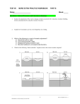 15. The structures shown in the diagram most likely formed at a boundary where the plates were a) moving upwards c) coming d) sliding past each other.