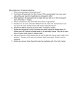 Microscope Lab­­ Analysis Questions: 1. What is the advantage of using high power? 2. If a slide has 28 yeast cells in a field of view of 100x, approximately how many yeast cells will be seen when the magnification is increased to 400x? 3. What happens to the appearance of an object when you look at it in the microscope? (think of the letter “e” image) 4. Why is it important to only use the fine focus when on high power? 5. Describe how the onion cell looked different from the cheek cell. what structure could you see in the onion cell that human cells (animal cells) don’t have? 6. Describe the effects of placing an onion cell in a hypertonic solution. 7. Explain what happened to onion cells when they were exposed to distilled water. If a human blood cell is placed in distilled water, it will eventually rupture. Why did the onion cells not rupture when placed in distilled water? 8. After a family picnic, Emily dumped the ice and rock salt from the ice cream maker in the backyard. That area of the yard now contains dead, brown grass. Explain why this happened. 9. Explain why grocery stores frequently spray the vegetables with a fine mist of water.