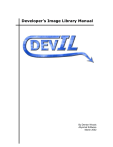 Developer’s Image Library Manual By Denton Woods Abysmal Software March 2002 Table of Contents Introduction ............................................................................................................1 Library Setup .........................................................................................................2 Microsoft Visual C++ Setup ...............................................................................2 Directories ...................................................................................................2 Post-Build ....................................................................................................3 MSVC++ Bug Workaround .........................................................................4 Multithreading .............................................................................................4 DJGPP Setup .......................................................................................................4 General GCC-Based Setup ..................................................................................4 Basic Procedures ....................................................................................................6 Initializing DevIL ................................................................................................6 File Handling .......................................................................................................7 Loading Images ............................................................................................7 Saving Images ..............................................................................................7 Image Characterisitics ...........................................................................................8 Image Manipulation...............................................................................................8 Alienifying...........................................................................................................8 Blurring ...............................................................................................................9 Contrast ...............................................................................................................9 Equalization .......................................................................................................10 Gamma Correction ............................................................................................10 Negativity ..........................................................................................................10 Noise ..................................................................................................................11 Pixelization ........................................................................................................11 Sharpening .........................................................................................................12 Resizing Images ....................................................................................................13 Sub-Images ...........................................................................................................13 Mipmaps ............................................................................................................13 Animations ............................................................................................................ Developer’s Image Library Manual 1 Introduction Developer’s Image Library was previously called OpenIL, but due to trademark issues, OpenIL is now known as DevIL. DevIL is an open source programming library for programmers to incorporate in to their own programs. DevIL loads and saves a large variety of images for use in a software developer’s program. This library is capable of manipulating images in various ways and passing image information to display APIs, such as OpenGL and Direct3D. The purpose of this manual is to guide users in coding with the Developer’s Image Library. This manual is for users proficient in C and with competent knowledge of the integrated development environment (IDE) or compiler they are using. Library Reference Several times throughout this document, the three different sub-libraries of DevIL are referenced as IL, ILU and ILUT. IL refers to the base library for loading, saving and converting images. ILU refers to the middle level library for image manipulation. ILUT refers to the high level library for displaying images. Functions in IL, ILU and ILUT are prefixed by ‘il’, ‘ilu’ and ‘ilut’, respectively. 2 Developer’s Image Library Manual Library Setup Microsoft Visual C++ Setup DevIL setup for Windows is straightforward. Unzip DevIL in an empty directory. If using WinZip, check the “Use folder names” box before unzipping. Use the -d command line option if using pkunzip. Then double-click on the ImageLib.dsw file in the install directory to load the DevIL workspace in Microsoft Visual C++ (MSVC++). Directories You will need to change some directory settings in MSVC++ to get DevIL working. 1. 2. 3. 4. 5. Navigate to the Tools menu and select Options. Click on the Directories tab. Under Show directories for, select "Include files". Click the New button (to the left of the red 'X') Type the directory DevIL is installed in, plus "\Include". For example, if you installed DevIL to E:\ImageLib, enter "E:\ImageLib\Include". Figure 1-1. Include Directory Settings Dialog 6. Under Show directories for, click on "Library files". 7. Click the New button (to the left of the red 'X'). 8. Type the directory DevIL is installed in, plus “\Lib". For example, if you installed DevIL to E:\ImageLib, enter "E:\ImageLib\Lib". 9. Click the New button (to the left of the red ‘X’). Developer’s Image Library Manual 3 10. Type the directory DevIL is installed in, plus "\Lib\Debug". In the previous example, you would enter "E:\ImageLib\Lib\Debug". 11. Choos