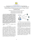 International Journal of Emerging Technology and Advanced Engineering Website: www.ijetae.com (ISSN 2250-2459, ISO 9001:2008 Certified Journal, Volume 4, Issue 3, March 2014) Android-Based Mobile Payment System Using 3 Factor Authentication Saurabh Yadav1, Pranali Patil2, Mahesh Shinde3, Priyanka Rane4 1 Saurabh Yadav (BE Comp S.N.D COE & RC, YEOLA) 2 Pranali Patil (BE Comp S.N.D COE & RC, YEOLA) 3 Mahesh Shinde (BE Comp S.N.D COE & RC, YEOLA) 4 Priyanka Rane (BE Comp S.N.D COE & RC, YEOLA) Abstract-- This work is used for making transaction such as doing payment, transferring funds/money, doing online transaction via android Smartphone platforms for prominent mobile payment. This work combines a pair of Smartphone for apparent transaction, Server and paying client. These devices are featuring 3 types of authentication in this work to make a simpler and secure transaction than credit cards/atm cards/debit cards or other electronic payment cards.3 type of authentication consists of Password authentication, USIM card authentication and biometric facial authentication. This work offers simple but practical method for face recognition, eigenvectors .Eigenvectors known as eigenfaces is the approach for recognition in face classification. Research shows that proposed work have developed a near real time computer system that can locate and track a subject head and then recognize the person by comparing characteristic of the face to those of known individual. Keywordspayment. Android, 3 ways authentication, Figure 1. Mobile payment device featuring 3-type of authentication. In view of non invasion and cost-effectiveness, this work adopts face feature as biometric authentication rather than fingerprint feature or iris feature. While on the other hand, the security issue of Ad Hoc networking between the server and the mobile payment paying client is also critical. This work develops ports Secure Sockets Layer (SSL) protocol to put AES/DES encryption algorithm on the Ad Hoc wireless channel. As face is primary focus of attention in social intercourse, it plays major role in conveying identity and emotion. Our task is to develop a computational model of face recognition that is fast, reasonable simple and accurate in constrained environment. There would be wide variety of problems; including criminal identification, image processing and film processing and so on .Developing a computational model of face recognition is quite difficult because faces are complex, multidimensional. We therefore are focusing our attention fully on developing pattern recognition capability that does not depend on three dimensional information or detailed geometry. mobile I. INTRODUCTION Since the cell phone embedded with a Universal Subscriber Identity Module (USIM) card has become the most widespread device that human beings have ever created and brought along, global telecom operators are unexceptionally engaged in mobile payment service to share the ever-increasing electronic payment card market. Besides, mobile payment technology can be applied to public transportation’s electronic ticketing, vending machines, membership cards, smart poster interaction, and house electronic keys, car smart keys, official digital signatures, and soon. In this work, the user interface of the mobile payment devices is designed as easy-to-use as possible, and more importantly, the personal security must be strictly protected by 3-factor authentication feature, that is, Password authentication, USIM card authentication, and biometric facial authentication. This is shown in Figure 1 797 International Journal of Emerging Technology and Advanced Engineering Website: www.ijetae.com (ISSN 2250-2459, ISO 9001:2008 Certified Journal, Volume 4, Issue 3, March 2014) II. LITERATURE SURVEY B. USIM Authentication With fast development in the mobile and wireless technology of interworking of heterogeneous networks turns into a trend and various wireless networks are getting connected with the mobile core networks through different measures. At present, in mobile communication technology, access authentication methods of various access networks are different then other and they all are based on the unique authentication algorithm in (U)SIM. In USIM authentication we add a media-independent authentication layer in USIM which outputs the uniform keys after an validating, and a key adaptation layer is designed in the terminals which transforms the output keys accordingly to meet the specific requirements of various communication. In this method, USIM is extensible in authentication algorithms and the authentication framework is independent of the communication technology. Our analysis indicates that the proposed scheme is of great advantages over the current one. Current authentication systems are suffering from many weaknesses. Textual passwords are commonly used; however, users do not follow their requirements. However Users are liable to choose meaningful words from dictionaries, which make textual passwords easy to break and exposed to possibility of being attacked or harmed, or brute force attacks. Many available graphical passwords have a password space that is less than or equal to the textual password space. Smart cards or tokens can be stolen. Many biometric authentications have been put forward; however, users tend to resist using biometrics because of their intrusiveness and the effect on their privacy. Moreover, biometrics cannot be revoked. III. RELEVANCE OF WORK In this work we are developing a pair of mobile payment devices, server and a paying client, on Android-based Smartphone platforms for emerging mobile payment or electronic wallet services.3 types of authentication in this work make a simpler and secure transaction than traditional credit cards or electronic payment cards. C. Face Authentication Eigenfaces is an alternative name given to a set of eigenvector when they are used in the computer vision problem of human recognition. The