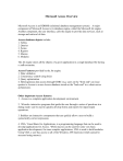 Microsoft Access Overview Microsoft Access is an RDBMS (relational database management system). A major component of Microsoft Access is its database engine, called the Microsoft Jet engine. Another component, the user interface, calls the engine to provide data services, such as storage and retrieval of data. Access database objects include: 1. Tables 2. Queries 3. Forms 4. Reports 5. Macros 6. Modules The Jet engine stores all the objects of a given application in a single database file having a .mdb extension. Access Features provided by the Jet engine: 1. Data validation 2. Concurrency control using locks 3. Query optimization 4. Heterogeneous data access through ODBC (e.g. users on the "front-end" can issue queries in Access to a non-Access database stored on the "back-end" in a client-server architecture). Other important Access features: 1. Access is a complete application development environment. 2. Wizards--interactive programs that guide the user through a series of questions in a dialog mode--can be used to quickly develop forms and reports for input/output operations. 3. Builders are interactive components that can quickly allow a user to build a syntactically correct expression. 4. VBA, Visual Basic for Applications, is a programming language that can be used to develop applications for Access. While macros can be used for some very basic application development, for more complex applications, VBA is used to build modules. Using VBA, a user has access to all of the Windows API functions (which cannot be accessed using macros). Page 2 5. OLE (object linking and embedding) data types can be used for a field type definition. OLE objects refer to a class of Windows objects that can be linked and embedded in other objects. OLE objects include graphs, sound, pictures, and spreadsheets. Creating a New Database in Access 1. Select File|New Database from the Menu; click on OK button in the window, selecting a blank database. 2. In the New Database Window, type in the name of your database, and click on the Create button. Creating Tables 1. Open the database in which the Table is to be stored. 2. From the database window, click on the Tables tab and Select New and use Design View. 3. In Design View, type in Field Names and the Data type, together with descriptions of the fields. Specify a primary key using the button with the key icon on it. The various Access data types include: text, memo, date/time, currency, counter, yes/no, and OLE object. 4. When specifying the data type you can specify field properties in the lower pane (use the F6 key to move from upper to lower pane and vice versa). Field properties include field size, format (allows you to customize the way the field will appear; e.g. hyphens in social security numbers), input mask (used for typing in the actual data), caption (a name used when typing in field data; default caption is the field name), default value, validation rule (allowing you to specify condition for valid values), validation text (text displayed when validation rule is violated), required (is data required for this field?), allow zero length, and indexes (allow or disallow Access to create an index for this field). From the menu bar, select File|Save As to save the table design. 5. Enter data in datasheet view (use the leftmost button under the File menu to change from design view to datasheet view, or click on View from the menu bar, selecting Datasheet view). Note: It is important to complete the design of tables and fields before creating forms and reports. Changes made to table and field properties after a form is created will not be copied to the form (e.g. changing the caption, or description, which goes on status bar of form). To add a new field to a table: In design view, select Insert Row from menu bar (or use toolbar button). To move field to new location: click and drag using field selector button( arrow in leftmost column). Deleting a field: highlight and use delete key. Note: Table Wizard may be used to create tables. Page 3 Creating Relationships Between Tables 1. Open Relationships window (use toolbar button, or select Tools|Relationships from menu). 2. Select tables involved in relationship (Show Tables dialog box helps you with this). 3. Click Close when finished selecting tables. 4. Click and drag field from one table to matching field of the other table (e.g. DNO from Employee table to Dnumber from Department table) to indicate relationship. 5. The Edit Relationships dialog box appears asking if you want to establish referential integrity, and whether you want to cascade update related fields or cascade delete related records by enabling the appropriate check boxes. 6. Click create. Creating Queries Use SQL (Note in SQL queries, place names with spaces in brackets; for example: SELECT UnitPrice FROM [Order Details] WHERE Quantity >15; Use QBE (Query by Example) grid Using QBE grid to create a "select query': 1. From the Database Window, click on the Query tab. 2. Select New and Design View. 3. From the Show Table Window, select (Add) the Tables (and/or Queries) to be used in designing your new query. 4. Rows on the QBE grid include Field, Table, Sort, Show, Criteria, and "or". On the first row (Field row) enter all field names to be used in your query (include fields that you want to view (corresponding to fields in the Select clause of an SQL query), and fields that will be used in a selection criteria (fields corresponding to fields in the Where clause of an SQL query). 5. Use Sort and Show check boxes under the field names in the same column if you want to sort on that field (you can select ascending or descending) or if you want to display that field (i.e. checking the check box in the Show row under a Field name is equivalent to entering the field name in the Select clause in an SQL query). 6. Fill in the criteria row. The criteria row is used to fill in conditions corresponding to conditions in the Where clause in an SQL statemen