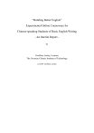 “Building Better English” Experimental Online Courseware for Chinese-speaking Students of Basic English Writing - An Interim Report by Geoffrey Lasley, Lecturer The Overseas Chinese Institute of Technology (c) 2001 Geoffrey Lasley “Building Better English” Experimental On-line Courseware for Chinese-speaking Students of Basic English Writing - An Interim Report - Abstract Beginning students of English writing have considerable difficulty making the transition from receptive reading activities, where a surface understanding is sufficient, and oral activities, where “communication” is the paramount consideration, to written expression, where successful communication depends upon the correct use of structure and vocabulary. The primary difficulty students at this stage face is working within their productive competence, a competence that lags far behind their reading ability. Because students are always reaching too far in their English written communication, they tend to produce work of consistently disappointing quality. In order to train students to write within their own personal productive competence, an online writing courseware, “Building Better English,” was designed. The courseware was used, in the Spring semester of the 2000 academic year, in lieu of a text book. This interim report relates the technical and pedagogical considerations and difficulties that lie behind the first three units of the project. Introduction Teachers of English writing have always struggled with the burden of marking student compositions. For those of us teaching classes of fifty to sixty students (and often three or four sections per semester), this burden frequently becomes overwhelming. We find ourselves spending what seems like every waking hour going over student essays, and our teaching, eventually, suffers for it. Regardless of our best intentions and sleepless nights, however, it does indeed seem that “no conceivable combination of praise, blame, commentary, diagnosis or correction” leads to any significant improvement in students’ writing skill (Holmes, 36). Yet, we 2 hang in there. We continue to carry our homework with us wherever we go, like so many old ladies with their knitting, spending every spare moment filling neatly written essays with red editing marks and the occasional exclamation point. Will there ever be an end to it? Not unless our students’ writing makes a sudden, miraculous improvement, it seems, will we be free of this burden, free to go out in the evening without a stack of papers tucked under our arm. But how is it possible, we ask ourselves, for students to make such progress without going through the torture (for them as well as for us) of writing really bad compositions that we can help them with and from which they can learn? Students want teachers to correct all of their mistakes (even the most minor mistakes) (Leki, cited in Holmes). On the other hand, students get discouraged when they see so much red on their papers (Rao). If we think about it for a moment, there is really no contradiction. Students want help improving their English writing skills; they just don’t want to see, every time they get their papers back, how far from their goal they seem to be. What I would like to suggest is that there may be a way we can increase students’ confidence in their writing and help them grow as writers (and at the same time free ourselves from some of the burden of marking student work). We can do this by putting limits on students’ writing - limits not on their freedom to say what they feel or think, of course, but only on how they say it. The Taiwan EFL environment According to the input hypothesis (Krashen and Terrell, 1983), students acquire language skills by being in an environment where they receive sufficient amounts of linguistic input that is just a step beyond their level of competence. By stretching for meaning just beyond their reach, learners learn. In Taiwan, students begin their formal English education in middle school. According to the input hypothesis (Krashen and Terrell, 1983), students acquire language skills by being in an environment where they receive sufficient amounts of linguistic input that is just a step beyond their level of competence. By stretching for meaning just beyond their reach, learners learn. In Taiwan, students begin their formal English education in middle school. Their long term goal, as English learners, is to gain command of the language sufficient to read specialized text books. That is, 3 over the course of six years, students are expected to go from 0 to university-level English reading comprehension skills. If they were to follow the natural course of second language acquisition (following Krashen) and grow according to their natural abilities one step at a time, they would never reach this goal in time. Therefore, the natural acquisition process is set aside and a learning system is instituted whereby the students are exposed to English at an accelerated speed of not i+1 (where i is their current level of competency and i+1 is the step just beyond that) but of i+101. Students are given instruction focusing primarily on English grammar and vocabulary. Thus, with a basic understanding of English sentence structure and a collection of vocabulary, students are able to comprehend (at least the surface meaning of) English texts that are far beyond their true linguistic (communicative) competence. Moreover, because the goal is university-level reading comprehension, almost no time is spent on the productive skills of conversation or writing. The result of this emphasis on receptive rather than productive skills is that when the time comes for students to produce English, they have only translations skills to fall back on and find themselves stuttering through even the simplest of sentences (as they try to get their mouths to form the English utterance translated from their Chinese internal dialog) or writ