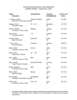 1 TEACHER/PROFESSIONAL APPOINTMENTS BOARD AGENDA – September 9, 2002 NAME COLLEGE ASSIGNMENT ** Adamko, James Program Facilitator Southwest Texas State University SCHOOL EXPERIENCE* EFFECTIVE DATE Austin 27 08-16-02 Aegerter, Sonia Columbia College Gr. 3 – Bil Brentwood 00 08-13-02 Andrus, Deborah University of Texas, Austin Reading Johnston 02 08-13-02 Appel, David University of Illinois P. E. Andrews 01 08-13-02 Archbold, Betsy Baylor University Special Ed Austin 00 08-13-02 ** Azios, Olga Lamar University Counselor Johnston 30 08-06-02 Bailey, Gloria University of Texas, Austin Science Webb 00 08-13-02 Barba, Jesus Texas Tech University Gr. 1 – Bil Winn 00 08-13-02 Berk, Joseph University of Texas, Austin Math Akins 03 08-13-02 Boltz, Jennifer Texas Christian University Asst Band Director O. Henry 02 08-13-02 Borden, Margaret University of Texas, Austin Math Akins 04 08-13-02 Bowie, Mhairi Barnard College Biology Lanier 00 08-13-02 Box, Kimberly Kindergarten Southwest Texas State University Allan 00 08-13-02 Breard, Alice University of Texas, Austin Cook 00 08-13-02 * Pre K - Bil Experience reflects official service records received and processed at the time this document is created. This information will be updated for some employees as additional service records are received. 2 TEACHER/PROFESSIONAL APPOINTMENTS BOARD AGENDA – September 9, 2002 NAME COLLEGE ASSIGNMENT Buffamonte, Brian Tarleton State University Social Studies – Athletics Travis 02 08-13-02 Burdett, Sarah University of Houston Language Arts Paredes 00 08-13-02 ** Bush, Frances University of Texas, Austin Principal Porter 33 08-01-02 Butler, Denise Houston Baptist University Asst Band Director Webb 01 08-13-02 Butler, James Manchester College Kindergarten Winn 00 08-13-02 Walnut Creek 00 08-13-02 Calhoun, Patricia Gr. 5 Southwest Texas State University SCHOOL EXPERIENCE* EFFECTIVE DATE Castaneda-English, Patricia University of Texas, Austin Counselor – Bil Pearce 06 08-06-02 Castillo-Wilson, Casidy University of Texas, Austin Choir Johnston 00 08-13-02 Castle, Paul Gr. 4/5 – Bil Southwest Texas State University Travis Heights 00 08-13-02 Chapa, Orlanda Speech Therapist Southwest Texas State University Rosedale 00 08-13-02 Cid, Vidal University of Texas, Austin Science Kealing 00 08-13-02 Ciesla, Karen University of Texas, Austin Gr. 8 – Math O. Henry 00 08-13-02 Clay, Jill Texas Christian University Language Arts – Sp Ed Dobie 00 08-13-02 Conyers, Sara Trinity University World Geography Austin 00 08-13-02 * Experience reflects official service records received and processed at the time this document is created. This information will be updated for some employees as additional service records are received. 3 TEACHER/PROFESSIONAL APPOINTMENTS BOARD AGENDA – September 9, 2002 NAME COLLEGE ASSIGNMENT SCHOOL EXPERIENCE* Cooley, Suzanne George Mason University Gr. 7 – Science Mendez 00 08-13-02 Coppage, Elaina University of Texas, Austin Special Ed Austin State Hospital 00 08-13-02 Corry, Deborah University of Texas, Austin Special Ed Brentwood 05 08-13-02 Costanzo, Lisa Syracuse University Special Ed Langford 00 08-13-02 Cruz, Rosalia Texas A & I, Laredo Project Facilitator Travis 29 08-12-02 Davenport, David Indiana University Orchestra LBJ 20 08-13-02 Davis, April University of Texas, Austin Gr. 2 Norman 00 08-13-02 Debbs, Rosalinda University of Texas, Austin Kindergarten – Bil Langford 00 08-13-02 De La Garza, Bernadette University of Texas, Austin Science Kealing 00 08-13-02 Delgado, Kristien Gr. 1 – Bil Southwest Texas State University Blanton 00 08-13-02 Dew, Trish Project Specialist University of Texas, San Antonio Crockett 00 08-13-02 Duarte, Rolando University of Texas, Austin Johnston 00 08-13-02 Duke, Dianne Math Texas A & M University, Corpus Christi Bailey 06 08-13-02 ** Duran, Yvonne Principal Texas A & M University, Kingsville Govalle 27 08-01-02 * Social Studies EFFECTIVE DATE Experience reflects official service records received and processed at the time this document is created. This information will be updated for some employees as additional service records are received. 4 TEACHER/PROFESSIONAL APPOINTMENTS BOARD AGENDA – September 9, 2002 NAME COLLEGE ASSIGNMENT SCHOOL EXPERIENCE* EFFECTIVE DATE Ecklund, Jaclyn University of Texas, Austin Early Child – Sp Ed Travis Heights 00 08-13-02 Edwards, Brian Asst Band Director Louisiana State University and A & M College Austin/Small 00 07-25-02 Edwards, Jonathan University of Texas, Austin Art McBee 00 08-13-02 Ellison, Bryon Hardin-Simmons University Math Crockett 00 08-13-02 Elmore, Flavia University of Houston Early Child – Sp Ed Govalle 00 08-13-02 Engdahl, Jenene University of Texas, Austin Gr. 6 – Science Webb 00 08-13-02 Ervin, Jermaine Hardin-Simmons University 7/8 Reading Paredes 00 08-13-02 Eureste, Melissa University of Texas, Austin Chemistry Johnston 00 08-13-02 Evans-Voyle, Stephanie Tarleton State University Gr. 3 Andrews 00 08-13-02 Ewald, Jennifer University of Texas, Austin Gr. 4 Oak Hill 00 08-13-02 Fajkus, Jean University of Texas, Austin Educational Diagnostician Harris 25 08-13-02 Faust, Gary Band Director Northwestern State University of Louisiana Travis 17 07-22-02 Faw, Tammy Assoc Psych Intern Southwest Texas State University Mendez 00 08-13-02 Ridgetop 00 08-13-02 Ferrer, Laura University of Puerto Rico * Early Child – Bil/Sp Ed Experience reflects official service records received and processed at the time this document is created. This information will be updated for some employees as additional service records are received. 5 TEACHER/PROFESSIONAL APPOINTMENTS BOARD AGENDA – September 9, 2002 NAME COLLEGE ASSIGNMENT SCHOOL EXPERIENCE* EFFECTIVE DATE Finnell, James Asst Band Director West Texas A & M University LBJ/Kealing 06 07-29-02 Fisher, Ann Pre K Southwest Texas State University Brentwood 07 08-13-02 ** Fisher, John Asst Principal Southwest Texas State University Baranoff 28 08-01-02 Flansbu