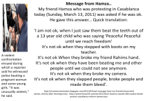 Message from Hamza.. My friend Hamza who was protesting in Casablanca today (Sunday, March 13, 2011) was asked if he was ok. He gave this answer... Quick translation: A violent confrontation ensued during which a reporter said he witnessed police beating a pregnant woman and some young girls. "It was unusually violent," he said. 'I am not ok, when I just saw them beat the teeth out of a 13 year old child who was saying 'Peaceful Peaceful until we reach freedom' It's not ok when they stepped with boots on my teacher. It's not ok When they broke my friend Rahims hand. It's not ok when they have been beating me and other people until we could not see anymore. It's not ok when they broke my camera. It's not ok when they slapped people, broke people and made them bleed'. http://mariamsrevolution.blogspot.com/2011/03/sad-message-from-my-friend-hamza.html photo, shortly after the blog entry: http://www.france24.com/en/20110313-dozens-injured-after-police-breakprotest-casablanca-reform-democracy Along with a $200,000 fundraising pitch to riding associations, on March 3, a staffer in Immigration Minister Jason Kenney's (Calgary Southeast, Alta.) office unintentionally sent to NDP MP Linda Duncan (Edmonton-Strathcona, Alta.) 28 pages of PowerPoint slides outlining the Conservatives' "Ethnic Paid Media Strategy" to build the Conservative brand in cultural communities. They build relationships, garner trust, anticipate pushback on any given issue and come up with a communications strategy, understand the machinery of government, have access to key decision-makers inside government, and are "sensitive to the 'politics' of decision making," say insiders in the Government Relations (GR) industry • There are more than 5,000 lobbyists in Canada registered to lobby the federal government. • To make it to the TOP 100 list: – the lobbyists have to be registered with the Office of the Lobbying Commissioner, – they have to be influential with the current Conservative government – have the ability to manoeuvre their way through the federal bureaucracy in order to move their or their client's file – and/or, they have to represent an organization with clout, not onlyin size, but with public policy issues at the forefront of today's political climate. Top 100 Lobbyists • several energy-related corporations or lobbyists on the list because it's an issue on the top of the government agenda at the moment. • also why there are no environmental groups on the list, because, as has been previously reported: environment issues are not on this Conservative government's radar. • while perhaps not at the top of the government's agenda, a popular issue the past while has been the battle between cable companies and broadcasters over the fee-for-carriage issue. – So there are several telecommunications companies and lobbyists who represent them on the list. The Firm & its Team • lobbying is often done in a team approach – therefore no one lobbyist can stand out. • Sometimes the team is made up of lobbyists from a cross-section of lobby firms • But in many, if not most cases, the team is made up by and within a firm and without the contacts and support of key members in a firm, the 'top lobbyists' would be lost. • The synergy of the team propels everyone. The Hill Times Top 100 list • • • • THE 'CONSULTANT' LOBBYISTS Kristin Anderson Global Public Affairs A former Conservative Party staffer, Kristin Anderson is a well-connected lobbyist who specializes in energy and natural resources issues. • As the climate change debate comes to the forefront, she will be busy lobbying on behalf of her clients, Conoco Phillips Canada, Shell Canada Limited, Canadian Natural Resources Limited, Canadian Energy Pipeline Association, Alliance Pipeline Limited Partnership and the Canadian Association of Petroleum Producers. David Angus, Capital Hill Group • As a former federal and provincial political staffer, David Angus has the knowledge and network and is considered to be one of the most successful lobbyists in town. • He worked as the caucus liaison in Brian Mulroney's PMO from 1985-1987 and has more than 30 years of public policy and communications experience. • He is currently registered to lobby the federal government on behalf of more than 50 companies, including Molson Canada, UFC Ultimate Fighting Championship, Bell Canada, Lockheed Martin, MacKenzie Aboriginal Corporation, and the CanadianShipowners Association among several others. Don Boudria, Hill and Knowlton • former Liberal MP and Cabinet minister for almost 20 years, is well-connected and an expert on government machinery. He is a senior counsellor at Hill and Knowlton, and is currently registered for Amgen Canada Inc., Council of Ontario Universities, Talisman Energy Inc., Saskatchewan Telecommunications, Bell Canada, Embraer Empressa Brasilera Aeronautics, Merck Frosst Canada and Canada's Research Based Pharmaceutical Companies among several others. Grey, Clark, Shih and Associates Clark is a respected lobbyist among insiders. He is a former public servant who worked for Foreign Affairs and Finance for more than 10 years, specializing in trade issues. As a lobbyist, his clients reflect his expertise in the regulated industries and services, including food standards and safety and security. He's currently registered to lobby the federal government on behalf of Dairy Farmers of Canada, Cameco Corporation, Methanex Corporation, Japan Iron and Steel Federation, U.S. Steel International, Coalition for Fair Lumber Imports, Food Processors of Canada, and the Canadian Pork Council, among several others. Budget Process • Pre-budget consultations in the fall • "Pre-budget stuff is very busy," said Geoff Norquay, a principal at government relations firm Earnscliffe Strategy Group. "The budget is the principal spending commitment of the year...” • Finance Minister Jim Flaherty has signalled the federal budget will be tight this year an