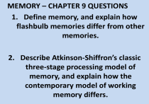 MEMORY – CHAPTER 9 QUESTIONS