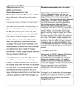 Major Works Data Sheet Title: Slaughterhouse Five Biographical information about the author Author: Kurt Vonnegut Date of Publication: March 1969 Genre: Fiction, Time travel, Black Humor, Anti-War Novel, Philosophy, Science Fiction, Speculative Fiction Historical information about period of publication Slaughterhouse-Five speaks of the firebombing of Dresden in World War II, and refers to the Battle of the Bulge, the Vietnam War, and the civil rights protests in American cities during the 1960s. Billy's wife, Valencia, wears a Reagan for President! bumper sticker on her car, referring to Reagan's failed 1968 Republican presidential nomination campaign. The bumper sticker was edited out of a broadcast version of the film which aired on at least Kurt Vonnegut Jr. was born on November 11, 1922, in Indianapolis, Indiana, the son of a successful architect, Kurt Sr., and his wife, Edith Sophia. Vonnegut was raised along with his sister, Alice, and brother Bernard (whom he spoke of frequently in his works). Fourth-generation Germans, the children were never exposed to their heritage because of the anti-German attitudes that had spread throughout the United States after World War I (1914–18; a war in which many European countries, some Middle Eastern nations, Russia, and the United States fought against Germany, Austria-Hungary, and Turkey). Because of the Great Depression (the severe economic downturn in the 1930s), the Vonneguts lost most of their wealth and the household was never the same. Vonnegut's father fell into severe depression and his mother died after overdosing on sleeping pills the night before Mother's Day. This attainment and loss of the "American Dream" would become the theme of many of Vonnegut's writings. one cable channel during or after the Reagan administration. Another bumper sticker is mentioned that says "Impeach Earl Warren." The slaughterhouse in which Billy Pilgrim and the other POWs are kept is also a real building in Dresden. Vonnegut was beaten and imprisoned in this building during World War II and it is because of the meat locker in the building's basement that he (and Billy) survived the fire-bombing; the site is largely intact and protected. One can visit it and take a two-hour guided tour called "Kurt Vonnegut Tour". Vonnegut in World War II He was sent as a POW to Dresden. On February 13, 1945, British and American bombers destroyed the city by dropping high explosives followed by incendiary bombs. The resulting firestorm turned the non-militarized city into an inferno that killed up to 60,000 civilians. Vonnegut and his fellow POWs survived by accident only because they were housed some 60 feet underground in a former meat locker and slaughterhouse. Vonnegut’s job for weeks after the bombing was to gather up and burn the remains of the dead. His experience at Dresden marked him for life and eventually resulted in his literary masterpiece, Slaughterhouse-Five. Characteristics of the genre: Slaughterhouse-Five is a anti-war science fiction book with elements of dark comedy and meta-fiction. Kurt Vonnegut uses the characteristics of this genre to successfully write a famous and controversial novel. The book is an autobiography of Kurt Vonnegut’s life following the firebombing of Dresden, with Billy symbolically representing all the characters that Vonnegut came across during World War II. He also uses Billy to explain the events that he cannot. Since Billy, like Vonnegut is unable to describe the horrendous events that had occured, science fiction was used to present a fictional, utopian place where Billy could recall the war. That is why he can describe the war better to Montana Wildhack in the Tralfamadorian zoo than to his wife on their honeymoon. The novel is also filled with dark humour to illustrate the funny, yet cruel nature of war, the most famous example being “So it goes”, which is repeated 106 times. Interestingly, Vonnegut drew attention in the first and last chapters to the fact that Slaughterhouse-Five is indeed a book, traits typical to a 20th century “postmodern” metafictional book. This in part was to make us understand that we stare at reality and yet treat a something distant, not related to us. Plot summary Billy Pilgrim is born in 1922 and grows up in Ilium, New York. A funny-looking, weak youth, he does reasonably well in high school, enrolls in night classes at the Ilium School of Optometry, and is drafted into the army during World War II. He trains as a chaplain’s assistant in South Carolina, where an umpire officiates during practice battles and announces who survives and who dies before they all sit down to lunch together. Billy’s father dies in a hunting accident shortly before Billy ships overseas to join an infantry regiment in Luxembourg. Billy is thrown into the Battle of the Bulge in Belgium and is immediately taken prisoner behind German lines. Just before his capture, he experiences his first incident of time—shifting: he sees his entire life, from beginning to end, in one sweep. Billy is transported in a crowded railway boxcar to a prisoner’s camp in Germany. Upon his arrival, he and the other privates are treated to a feast by a group of fellow prisoners, who are English officers who were captured earlier in the war. Billy suffers a breakdown and gets a shot of morphine that sends him time traveling again. Soon he and the other Americans travel onward to the beautiful city of Dresden, still relatively untouched by wartime privation. Here the prisoners must work for their keep at various labors, including the manufacture of a nutritional malt syrup. Their camp occupies a former slaughterhouse, which was named Slaughterhouse Five in English. One night, Allied forces carpet bomb the city, then drop incendiary bombs to create a firestorm that sucks most of the oxygen into the blaze, asphyxiating or incinerating roughly 130,000 people. Billy and his fellow POWs survive in an airtight meat locker. They emer