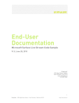 End-User Documentation Microsoft Surface Live Stream Code Sample V1.0, June 28, 2010 STIMULANT 180 Capp Street, Suite 6 San Francisco, CA 94110 www.stimulant.io 415 255 7081 1 Stimulant | 180 Capp Street Suite 6 | San Francisco, California 94110 http://stimulant.io Table of Contents Table of Contents ............................................................................................................................................ 2 Introduction ....................................................................................................................................................... 3 Prerequisites ...................................................................................................................................................... 3 Application Setup ............................................................................................................................................ 3 Step 1: Installation ..................................................................................................................................... 3 Step 2: Enter User Mode ........................................................................................................................... 4 Step 3: Using the Application ................................................................................................................. 5 Step 4: The Admin Controls..................................................................................................................... 5 Configuration Settings................................................................................................................................... 7 Feed Mechanism.......................................................................................................................................... 7 Look and Feel ................................................................................................................................................ 9 Troubleshooting Crashes ............................................................................................................................ 11 Upgrading ........................................................................................................................................................ 11 Uninstalling ...................................................................................................................................................... 11 Support and Questions ............................................................................................................................... 11 2 Stimulant | 180 Capp Street Suite 6 | San Francisco, California 94110 http://stimulant.io Introduction This document describes the installation and configuration of the Microsoft Surface Live Stream Code Sample application. Prerequisites Before you are ready to install and configure this application on your Microsoft Surface, the following should have already taken place: 1. A Microsoft professional has installed your Surface unit in its permanent location. 2. Your Surface unit has been calibrated (either by you or a Microsoft representative). 3. You know the host information and credentials to connect to this Surface unit and login as an administrator. If any of the previous steps have not been met or if you have questions about any of these steps please contact a Microsoft Surface support representative at (866) 425-8880, as these steps are not within the scope of this documentation. Application Setup STEP 1: INSTALLATION The application is distributed as a single MSI file for easy installation. To install, follow these steps directly on the Surface Unit. 1. Log in to the Surface unit in Administrator Mode. 2. Ensure that you have installed the latest Microsoft Surface Updates (http://technet.microsoft.com/en-us/library/ee692149%28Surface.10%29.aspx) 3. Copy the MSI file to the Surface unit via a network share or an attached USB storage device. 4. Double-click the MSI file to launch the installer. An installation wizard will follow. 3 Stimulant | 180 Capp Street Suite 6 | San Francisco, California 94110 http://stimulant.io 5. As you go through the installer, the only option that will appear is “Enable Single Application Mode.” This is described in more detail below. 6. After installing, if you are using this application in a public environment, set the system volume to its maximum level by clicking the speaker icon in the lowerright corner of the desktop. This will allow the audio in this application to be heard. About Single Application Mode Single Application Mode allows users to access only one application when interacting with a given Surface unit. This mode disables the Attract Screen and the Access Points in the corners of the screen that normally provide users access to the Launcher, and thus to other applications on the Surface Unit. This mode forces users to access only the content of the current application. In order to change this setting, uninstall the application (see “Uninstalling” below), then reinstall it, setting the Single Application Mode checkbox to the desired setting. STEP 2: ENTER USER MODE It is important to set up your Surface Unit in User Mode if it will be in a public setting so that your customers do not have access to administrative settings. 1. Once the application has been installed (Step 1), double-click the desktop icon that says “Enter User Mode”. 2. Make sure to leave the “enable troubleshooting” checkbox unchecked as you are entering user mode. 3. Your screen will clear. This may take a few minutes, don’t be concerned. Eventually the Surface Unit will launch the application and your external monitor (if you are using one) will not show anything. You are now in User Mode. User Mode vs Administrator Mode In User Mode, all Vista UI is suppressed and only the Surface experience is visible. For normal use of the application, the Surface u