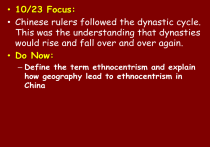• Chinese rulers followed the dynastic cycle.