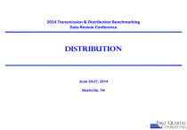 2014 Transmission & Distribution Benchmarking Data Review Conference Distribution June 25-27, 2014 Nashville, TN 1 Agenda Introduction Statistics and System Activity ● Guidelines ● Statistical Report ● Anomalies, Issues, Outliers and Corrections Financial ● Guidelines ● Statistical Report ● Anomalies, Issues, Outliers and Corrections Practices ● Guidelines ● Statistical Report ● Anomalies, Issues, Outliers and Corrections Next Steps 2 Statistics (ST) and System Activity (SA) 3 Purpose of the Section The purpose of this section of the questionnaire is twofold: to gather statistical information about the existing electric system, and then to gather further information about activities during the year that affect the system and the company. The statistical section gathers a variety of demographic information that describes each company's system in terms of size, voltage, customer density, etc. This information is used in doing analysis of the results, understanding the inherent advantages and limitations of the circumstances facing each utility. The system activity portion of the questionnaire is designed to identify work load drivers associated with activity. There are a variety of questions designed to understand the amount of capital activity as well as things that are done for O&M. 4 Transmission versus Distribution For purposes of this survey, we define distribution to be a voltage level of 45kV and below. The distinction is somewhat arbitrary, but picks a point between 69kv which is generally considered a transmission (or at least sub-transmission) level and 21kV which would generally be considered distribution. It is unrealistic to ask utilities to redefine their cost or reliability reporting on the basis of these definitions. However, a utility that has very different definitions may want to restate these statistics to better compare their performance. Distribution Voltage Classes 5kV class (>1kV, <=9kV) 15kV class (>9kV, <=15kV) 25kV class (>15kV to <=26kV) 35kV class (>26kV to <=36kV) 44kV class (>36kV to <=44kV) Transmission classes >=45kV <69kV class (>=45kV <69kV) 69kV class (>=69kV <100kV) 100kV class (>=100kV <200kV) 200kV Class (>=200kV <300kV) 300kV Class (>=300 kV <400 kV) 400kV and above 5 Substation Definitions One way to determine whether a substation is Transmission vs. Distribution would be based upon usage. For multi-purpose substations, you may either segregate costs or assign costs based upon predominant use. For purposes of this survey, we generally will recommend a low-side definition based upon a 45kV or below as a distribution substation. It is unrealistic to ask utilities to redefine their cost or reliability reporting on the basis of these definitions. We will rely on each utility’s self-assigned definitions. However, a utility that has very different definitions may want to restate these statistics to better compare their performance. Distribution Voltage Classes 5kV class (>1kV, <=9kV) 15kV class (>9kV, <=15kV) 25kV class (>15kV to <=26kV) 35kV class (>26kV to <=36kV) 44kV class (>36kV to <=44kV) Transmission classes >=45kV <69kV class (>=45kV <69kV) 69kV class (>=69kV <100kV) 100kV class (>=100kV <200kV) 200kV Class (>=200kV <300kV) 300kV Class (>=300 kV <400 kV) 400kV and above Note: We will have transmission-only and distribution-only entities participating in this survey. Undoubtedly their voltage levels will not necessarily line-up with the above definitions. 6 Substation Definitions (cont.) Because our benchmarking is done at a relatively high level, we want to include transmission substations that have auto-transformers, but not AC/DC converter stations. ● While these components aren’t all directly measurable, nor are the MVA calculations comparable, we want to recognize the existence of these units of property to make the benchmarking as comparable as possible. Customer-owned or dedicated substations are an issue in making comparisons. ● If customers own and maintain their own stations, the reporting option for this questionnaire is clear – please exclude both the O&M costs and the capacity for those stations. ● In the event that you maintain one or more customer-owned stations, the answer may be different. The preferred approach to responding to this portion of the questionnaire is to exclude the costs of the customer-owned stations, and exclude the capacity as well. However, if you cannot practically exclude them, then be sure that both the O&M costs and the capacity are included in all your answers. Small, pole-mounted mini-substations (e.g. transformers, protective devices and a switch) should not be counted as substations. 7 Substation Transformer Nameplate rating Generally speaking, we want to measure transformers by MVA rating at normal operating conditions. Since utilities have different operating conditions and different manufacturers have different ratings, we will rely on each utility to report their own conditions. Use the number you report in FERC Form 1. We recognize that autotransformers may have a different set of conditions and that the comparison is imprecise, however, we think this is a better solution than leaving them out entirely. 8 System Activity Section This section of the questionnaire is designed to identify work load drivers associated with activity. There are a variety of questions designed to understand the amount of capital activity and that ask for capital unit additions Other questions ask about selected O&M activities for the year. The goal is to understand the major drivers of work, not to capture all of the individual work activities. The questions are separated into Distribution Lines, Substations, and Transmission Lines 9 Distribution Lines Demographic Profile Service Territory Density: Customers per Square mile Density: Customers per Dist Circuit mile Percent of Dist Circuit Miles Underground Percent of Switches outside the substation remotely operated Managed Trees per OH Dist Str