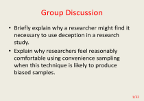 • Briefly explain why a researcher might find it necessary to use deception in a research study.