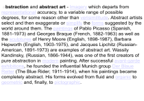 Hepworth (English, 1903-1975), and Jacques Lipchitz (RussianAmerican, 1891-1973) are examples of abstract art. Wassily