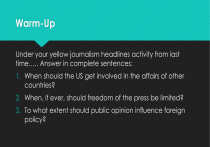 Under your yellow journalism headlines activity from last