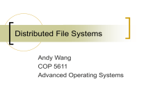 Distributed File Systems Andy Wang COP 5611 Advanced Operating Systems Outline Basic concepts NFS Andrew File System Replicated file systems Ficus Coda Serverless file systems Basic Distributed FS Concepts You are here, the file’s there, what do you do about it? Important questions What files can I access? How do I name them? How do I get the data? How do I synchronize with others? What files can be accessed? Several possible choices Every file in the world Every file stored in this kind of system Every file in my local installation Selected volumes Selected individual files What dictates the proper choice? Why not make every file available? Naming issues Scaling issues Local autonomy Security Network traffic Naming Files in a Distributed System How much transparency? Does every user/machine/sub-network need its own namespace? How do I find a site that stores the file that I name? Is it implicit in the name? Can my naming scheme scale? Must everyone agree on my scheme? How do I get data for non-local files? Fetch it over the network? How much caching? Replication? What security is required for data transport? Synchronization and Consistency Will there be trouble if multiple sites want to update a file? Can I get any guarantee that I always see consistent versions of data? i.e., will I ever see old data after new? How soon do I see new data? NFS Networked file system Provide distributed filing by remote access With a high degree of transparency Method of providing highly transparent access to remote files Developed by Sun NFS Characteristics Volume-level access RPC-based Stateless remote file access Uses XDR Location (not name) transparent Implementation for many systems All interoperate, even non-Unix ones Currently based on VFS VFS/Vnode Review VFS—Virtual File System Common interface allowing multiple file system implementations on one system Plugged in below user level Files represented by vnodes NFS Diagram NFS Client NFS Server / / /tmp x /mnt y /home foo /bin bar File Handles On the client site, files are represented by vnodes The client NFS implementation internally represents remote files as handles Opaque to client But meaningful to server To name remote file, provide handle to server NFS Handle Diagram Client side Server side User process file descriptor handle NFS server VFS level vnode vnode VFS level NFS level handle inode UFS How to make this work? Could integrate it into the kernel Non-portable, non-distributable Instead, use existing features to do the work VFS for common interface RPC for data transport Using RPC for NFS Must have some process at server that answers the RPC requests Continuously running daemon process Somehow, must perform mounts over machine boundaries A second daemon process for this NFS Processes nfsd daemons—server daemons that accept RPC calls for NFS rpc.mountd daemons—server daemons that handle mount requests biod daemons—optional client daemons that can improve performance NFS from the Client’s Side User issues a normal file operation Like read() Passes through vnode interface to client-side NFS implementation Client-side NFS implementation formats and sends an RPC packet to perform operation Single client blocks until NFS RPC returns NFS RPC Procedures 16 RPC procedures to implement NFS Lookup() is the key operation Some for files, some for file systems Including directory ops, link ops, read, write, etc. Because it fetches handles Other NFS file operations use the handle Mount Operations Must mount an NFS file system on the client before you can use it Requires local and remote operations Local operations indicate mount point has an NFS-type VFS at that point in hierarchy Remote operations go to remote rpc.mountd Mount provides “primal” file handle NFS on the Server Side The server side is represented by the local VFS actually storing the data Plus rpc.mountd and nfsd daemons NFS is stateless—servers do not keep track of clients Each NFS operation must be selfcontained From server’s point of view Implications of Statelessness NFS RPC requests must completely describe operations NFS requests should be idempotent NFS should use a stateless transport protocol (e.g., UDP) Servers don’t worry about client crashes Server crashes won’t leave junk lying around An Important Implication of Statelessness Servers don’t know what files clients think are open Unlike in UFS, LFS, most local VFS file systems Makes it much harder to provide certain semantics Also scales nicely, though Preserving UNIX File Operation Semantics NFS works hard to provide identical semantics to local UFS operations Some of this is tricky Especially given statelessness of server E.g., how do you avoid discarding pages of unlinked file a client has open? Sleazy NFS Tricks Used to provide desired semantics despite statelessness of the server E.g., if client unlinks open file, send rename to server rather than remove Perform actual remove when file is closed Won’t work if file removed on server Won’t work with cooperating clients File Handles Method clients use to identify files Created by the server on the file lookup Must be unique mappings of server file identifier to universal identifier File handles become invalid when server frees or reuses inode Inode generation number in handle shows when stale NFS Daemon Processes nfsd daemon biod daemon rpc.mount daemon rpc.lockd daemon rpc.statd daemon nfsd Daemon Server daemon to handle incoming RPC requests Often multiple nfsd daemons per site Incoming NFS RPC requests go to one nfsd daemon Which makes a kernel call to do the real work Using daemons allows multiple threads biod Daemon Most client NFS operations go from VFS NFS implementation to the server biod daemon does readahead for clients To make use of kernel file buffer cache Only improves performance—NFS works correctly without biod daemon Also flushes buffered writes for clients rpc.mount Daemon Runs on server to handle VFS-level operations for NFS P