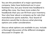 production. You have been asked to prepare a