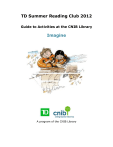 TD Summer Reading Club 2012 Guide to Activities at the CNIB Library Imagine A program of the CNIB Library Guide to Activities at the CNIB Library Page 2 Guide to Activities at the CNIB Library Table of Contents Club intro ........................................................................ 4 Teams ............................................................................ 5 Kit contents ..................................................................... 6 Participate online .............................................................. 9 Prizes ............................................................................. 9 How to earn points........................................................... 10 Crafts ............................................................................ 13 Recipes .......................................................................... 17 Activities ........................................................................ 20 Tips for better library service ............................................. 25 How to contact us ............................................................ 26 Guide to Activities at the CNIB Library Page 3 Club intro Welcome to the 2012 TD Summer Reading Club. What do vampires, fairies and aliens have in common? They’re all part of a fantastical, phantasmagorical world that you can visit this summer. The only ticket that you’ll need for this trip is…your imagination! Hop on the Hogwarts Express, climb into the Magic Tree House or take a tumble down the rabbit hole with Alice. Read books and do any of the activities described in this Guide to earn points for prizes – for yourself and your team. How do you know which team you’re on? Your team is listed on your passport, and we’ll tell you more in the ‘Teams’ section of this Guide. Once a week we’ll be sending out prizes. As long as you’ve earned points sometime during the week, you’ll receive a prize in the mail. The CNIB Library will keep track of your points – all you have to do is let us know how you’re participating. How do you earn points? Check out the ‘How to Earn Points’ section of the Guide. And remember, if you help your team earn more points than any other team by the end of the summer, we’ll send you a prize for that too. Plus, everyone who participates, even if they only earn a few points, will be eligible for a special prize draw at the end of the summer. The more you participate, the more points you earn, and the better your chances of winning! Guide to Activities at the CNIB Library Page 4 Teams What team are you on? Find your passport in your Kit. Your passport will tell you: the name of your team your fantastical destination There are five teams for this year’s Club. They are: Goblins Fantastical destination: Where the wild things are Dragons Fantastical destination: Narnia Titans Fantastical destination: Neverland Jabberwocks Fantastical destination: Wonderland Wizards Fantastical destination: Oz Guide to Activities at the CNIB Library Page 5 Kit contents 1. Imagine CDs There are three CDs in your Kit: audio recording of this Guide to Activities (tells you everything you need to know about how the Club works) audio recording of the Book Lists (divided into 4 categories: books for kids up to age 7; books for kids 8-12 years old; books for kids 13-16 years old; family favourites and classics) * these are just suggested titles, go ahead and read any books you want! compilation CD of three ready-to-read DAISY books! QUICK TIP: the Guide to Activities and Book Lists are also available in contracted or uncontracted braille, on request 2. Three free DAISY books (on one CD) We’re including three complete DAISY audio books all on one CD in this Kit! Don’t have a DAISY player yet? You can download DAISY software to your computer or contact your local CNIB office or public library to find out how to get a DAISY player. Books included on the enclosed DAISY CD: For kids up to 7 years old Catmagic by Loris Lesynski A collection of four stories by Lois Lesynski, including “Catmagic”, “Ogre fun”, “Boy soup or when the giant caught cold”, and “Dirty dog boogie”. Guide to Activities at the CNIB Library Page 6 For kids 8-12 years old Hamish X and the cheese pirates by Sean Cullen After arriving at the Windcity Orphanage, where the children are forced to make stinky blue cheese, Hamish X, the scourge of the Orphan Disposal Agency, is soon planning his escape. But his plans are put on hold when the factory is suddenly attacked by a fierce gang of pirates. In order to save the other orphans, Hamish X and his friends Mimi and Parveen must embark upon an epic adventure across the Arctic. For kids 13-16 years old The book without words, a fable of medieval magic by Avi A mysterious book with dangerous secrets and blank pages that can only be read by green-eyed people falls into the hands of a medieval alchemist determined to create gold and discover an elixir of immortality. When a local lawman desires the alchemist’s book of dark magic for himself, a priest, a poor orphan girl, and a talking raven must keep the book from falling into the wrong hands. QUICK TIPS: - this CD is yours to keep, but any other CDs you get from us do have to be returned - if you read one or more of these titles, don’t forget to add them to your list of books read this summer! 3. Passport For this summer’s trip into the world of fantasy, you’re going to want to keep the passport (included in your Kit) handy. You will find the name of your team and your fantastical destination in both large print and braille on your passport. Add your name at the top of your passport at the start of the summer. Guide to Activities at the CNIB Library Page 7 During the summer you can add the special skills of your team (use the back of your passport if you run out of room!) At the end of the summer you’ll be able to add: the number of books or minutes you read t