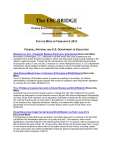 The ESC BRIDGE Bridging Resources, Information, and Data from Government and Education FOR THE WEEK OF FEBRUARY 9, 2015 FEDERAL, NATIONAL AND U.S. DEPARTMENT OF EDUCATION WASHINGTON, D.C., CONSIDERS BANNING PRESCHOOL SUSPENSIONS EDUCATION WEEK Advocates in Washington, D.C., welcomed a bill that would ban most suspensions and expulsions from public preschool programs, which was discussed during a public hearing in the nation's capital last week. Though the bill, introduced by City Council Member David Grosso, would govern policy in only one city, it touches on a more widespread issue. A U.S. Department of Education study released in March caused a small furor when it showed that black students nationally are far more likely to be suspended than white students, even in preschool. ARNE DUNCAN MAKES PUSH TO CONTINUE I3 PROGRAM IN NCLB REWRITE EDUCATION WEEK The U.S. Secretary of Education wants to preserve Investing in Innovation, an Obama administration competitive-grant program that would be scrapped under Republican legislation to overhaul the No Child Left Behind Act. TITLE I FORMULA CHANGES INCLUDED IN HOUSE REPUBLICAN NCLB REWRITE EDUCATION WEEK Lawmakers who have been trying for years to change the way Title I dollars for low-income students are disbursed to school districts scored a big win with House Republicans Wednesday morning. When GOP members on the education committee unveiled the No Child Left Behind Act overhaul that they plan to clear later in the afternoon, it included several technical changes to the measure they originally introduced. Notably, it increased the weight given to the percentage of low-income students in a school district, which is part of how Title I aid is distributed. HOUSE EDUCATION COMMITTEE APPROVES NCLB REWRITE ON PARTY-LINE VOTE EDUCATION WEEK The Republican-controlled House education committee approved an overhaul of the No Child Left Behind Act Wednesday afternoon on a party-line vote. The measure, which would significantly curtail the footprint of the federal government in K-12 schools, will be considered by the full House the week of Feb. 24. Among many other things, the bill would allow Title I money for low-income students to follow them to the public school of their choice, including charter schools; block-grant and make transferable funding for teacher preparation/development (Title II) and after-school programs (Title IV). OHIO LEGISLATION UPDATE (RECENT BILL ACTION IN RED) 131ST GENERAL ASSEMBLY House HB1 WORKFORCE GRANT PROGRAM (Rep. Kirk Schuring, Rep. Nathan Manning) To establish the Workforce Grant Program, to authorize an income tax credit equal to 25% of the student loan payments a grant recipient makes per year, and to make an appropriation STATUS: Introduced; Referred to House Economic & Workforce Development Committee HB2 CHARTER SCHOOL SPONSORSHIP (Rep. Mike Dovilla, Rep. Kristina Roegner) With regard to sponsorship and management of community schools STATUS: Introduced; Referred to House Education Committee HB5 PUBLIC OFFICE-STATE AGENCY EFFICIENCY STUDIES (Rep. Stephanie Kunze, Rep. Kyle Koehler) To allow the Auditor of State to conduct business case studies regarding the efficiency of local public offices and state agencies STATUS: Introduced; Referred to House Local Government Committee HB7 ASSESSMENT SCORE DETERMINATIONS (Rep. Jim Buchy) To prohibit individual student scores from certain elementary and secondary achievement assessments administered for the 2014-2015 school year from being used to determine promotion or retention or to grant course credit STATUS: House Education Committee – Reported out; Passed by House, Vote 94-0, Emergency Clause 95-1 HB12 TIF-INCENTIVE DISTRICTS (Rep. James Butler, Jr., Rep. Tony Burkley) To establish a procedure by which political subdivisions proposing a tax increment financing (TIF) incentive district are required to provide notice to the record owner of each parcel within the proposed incentive district before creating the district STATUS: Referred to House Ways & Means Committee HB15 STATE BOARD OF EDUCATION MEMBERSHIP (Rep. Ron Gerberry) To change the voting membership of the State Board of Education to consist of a member from each of several electoral districts with boundaries coinciding with the state's Congressional districts and a president to be appointed by the Governor if there is an even number of such electoral districts STATUS: Referred to House Education Committee HB20 CONCEALED CARRY-SCHOOL SAFETY ZONE (Rep. Anne Gonzales, Rep. Kyle Koehler) To expand and clarify the authority of a concealed handgun licensee to possess a handgun in a school safety zone STATUS: Introduced; Referred to House State Government Committee HB25 FOOD-DRINK SCHOOL SALES (Rep. Stephanie Kunze) To require the State Board of Education to adopt rules regarding the sale of beverages and food during the regular school day in connection with a school-sponsored fundraiser STATUS: Referred to House Education Committee HB27 FINANCIAL AID-FINISH FUND (Rep. Dan Ramos) To create the Finish Fund and the Finish Reserve Fund to provide grants to students who are nearing completion of their associate or bachelor's degrees and display financial need or hardship STATUS: Referred to House Finance Committee HB28 SUICIDE PREVENTION-HIGHER EDUCATION (Rep. Marlene Anielski) With regard to suicide prevention programs at state institutions of higher education STATUS: Referred to House Community & Family Advancement Committee HB39 SCHOOL-CAMP INHALER PERMIT (Rep. Mike Duffey, Rep. Anthony DeVitis) To permit schools and camps to procure and use a metered dose inhaler or dry powdered inhaler used to alleviate asthmatic symptoms in accordance with prescribed policies and to exempt them from licensing requirements related to the possession of these inhalers STATUS: Referred to House Health & Aging Committee HB42 LOCAL GOVERNMENT FUND (Rep. Ron Gerberry, Rep. Jack Cera) To require that, for fiscal year 2016 and each fiscal year