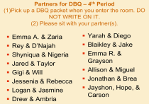Partners for DBQ – 4th Period