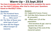 You have 4 minutes after the tardy bell to complete the warmup. You have 2 minutes after that to check your. Questions
