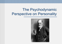 The Psychodynamic Perspective on Personality Who was Sigmund Freud? Psychiatrist from Vienna, lived from 1856 to 1939 His theories are referred to as “Classical Psychoanalytic Theory” or “Classical Psychodynamic Theory” Believed that mental disorders result from unconscious conflicts in the individual Created theories of the structure of the mind, as well as the development and dynamics of personality The Unconscious Mind (the basic principle of Freudian theory) Personality differences lie in the nature of the unconscious drives behind our conscious thoughts and behavior. Our conscious minds create false rationalizations for behavior with roots in the unconscious. The job of the therapist is to analyze speech and behavior for clues to the nature of the unconscious mind. Illogical speech and behavior, such as slips of the tongue, free associations, and the content of dreams can be the best clues to the unconscious. Sexual impulses that are kept in check by society emerge as aggressive ones. “Defenses” work to keep unacceptable thoughts out of the conscious mind. The Structure of the Mind The mind (or psyche) has three parts: the Id, the Ego, and the Superego. The Id • Present at birth, the energy center of the mind. • Composed of basic biological drives: food, water, elimination of waste, warmth, affection, and sex. • This psychic energy is called the libido. • Operates on the “pleasure principle” – when the Id has an unsatisfied drive, tension is produced and the person must act to resolve this tension. • As the child is socialized, the Id is quickly made part of the unconscious, below the level of awareness. The Structure of the Mind The Ego • Develops during the second 6 months of life, and is primarily conscious. • Operates on the “reality principle” – the realization that relying on the pleasure principle is not the most effective way of surviving. The Ego must mediate between reality and the demands of gratification made by the Id. • The Ego derives its energy from the Id, and yet must also direct it. The Superego • An entirely conscious part of the mind that develops throughout childhood. • As children discover that certain behaviors are not acceptable to their parents, they “introject” parental values as their own to gain parental approval. • The Superego serves as a “parental voice” advocating for the most societally acceptable behavior and producing feelings of guilt. • The Superego is also mediated by the Ego. The Iceberg Model of the Mind Psychosexual Development Freud believed that the personality develops in a series of four psychosexual stages. At each stage a different part of the body is most sensitive to sexual excitation and therefore most capable of providing satisfaction to the Id. Stage Age Source of Pleasure Oral Birth- 18 months Lips, Mouth, and Tongue. Demands of the Id are satisfied by feeding. Conflict over weaning. Anal 18 months- 3 years Anus. Demands of the Id are satisfied during this period by retaining and expelling feces. Conflict over toilet training. Phallic 3 years to 5-6 years Genitals. Demands of the Id are satisfied by genital stimulation. Oedipus/ Electra Complex. Latency Period 6 to puberty In these years, the demands of the Id are repressed. Same-sex friendships develop. Genital Genitals. Development of adult sexual interests and intimate relationships. puberty and on Psychosexual Development During each stage, the person must resolve the conflict between the Id’s demands and what they can realistically do in their environment. How this is accomplished determines the personality characteristics that will last throughout a person’s life. What may result if, at a particular psychosexual stage, a child receives excessive or deficient amounts of gratification? Fixations- when development goes wrong A “fixation” at a particular stage may result if a child receives excessive or deficient amounts of gratification. In periods of stress, the person is then likely to regress back to behaviors related to this stage. Oral Fixation - As adults they are often preoccupied with giving and taking. Smokers, overeaters, pencil-chewers, nail-biters, etc. Anal Fixation - As adults, they are often excessively neat (“analretentive”) or excessively messy (“anal-expulsive”). • “Does ‘anal retentive’ have a hyphen?” Phallic Fixation (Disturbance) - As adults, they often reject authority. Also, Freud cites this fixation as the cause of homosexuality Psychosexual Development Perhaps the most important stage is the phallic stage, when the child must resolve the Oedipus complex or the Electra complex, in which they must overcome desire for the opposite-sex parent and learn to identify with the same-sex parent.. Oedipus Complex - Boys desire their mothers (because of their early bond, but, because they fear that their fathers will castrate them if they find out, they suppress sexual feelings for their mothers into their unconscious. Electra Complex - Girls, because of penis envy, become angry at their mothers (because they believe their mothers have castrated them) and they become attracted to their fathers. But, fearing the loss of maternal love, they eventually identify with her mother, and suppress sexual feelings for their fathers into their unconscious. Defense Mechanisms of the Ego Anxiety results when the conscious Ego encounters the often socially unacceptable (or dangerous) drives of the unconscious Id. To relieve this anxiety, a defense mechanism is often used to distort reality and prevent ego anxiety. Defense mechanisms = one of the most well-accepted of Freud’s ideas today. From an evolutionary perspective: (1) (2) defense mechanisms : anxiety :: endorphins : pain We’ll examine each of the defense mechanisms using the “case of Karen”: Karen is in love with her best friend’s boyfriend. How can Karen use each defense mechanism to banish the anxiety that these feelings are pro