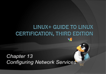 Chapter 13 Configuring Network Services Objectives Configure infrastructure network services, including DHCP, DNS, NTP, and NIS Configure Web services using the Apache Web server Configure files sharing services, including Samba, NFS, and FTP Configure e-mail services, including Sendmail and Postfix Configure database services using PostgreSQL Linux+ Guide to Linux Certification, 3e 2 Infrastructure Services Infrastructure services: provide network configuration and support for other computers on a network Include: DHCP DNS NTP NIS Linux+ Guide to Linux Certification, 3e 3 DHCP Dynamic Host Configuration Protocol (DHCP): used for automatically configuring a network interface Send DHCP broadcast on network Request IP configuration information DHCP server leases IP address to client computer for a period of time Ensures each client has unique IP address After expiration, must send another DHCP request Linux+ Guide to Linux Certification, 3e 4 The DHCP Lease Process Involves several stages: Client sends a request to all hosts on network DHCP server sends offer containing potential IP configuration Client selects (accepts) offer DHCP server sends acknowledgement indicating the amount of time client can use IP configuration Client configures itself with IP configuration Linux+ Guide to Linux Certification, 3e 5 The DHCP Lease Process (continued) Figure 13-1: The DHCP lease process Linux+ Guide to Linux Certification, 3e 6 Configuring a Linux DHCP Server Install DHCP daemon Use yum install dhcp command Edit DHCP daemon configuration file to list appropriate IP address range for the network and lease information /etc/dhcp/dhcpd.conf stores IPv4 configuration /etc/dhcp/dhcpd6.conf stores IPv6 configuration service dhcpd start command: starts the DHCP daemon Linux+ Guide to Linux Certification, 3e 7 DNS Hierarchical namespace used to identify computers on large TCP/IP networks Zone: portion of DNS administered by one or more DNS servers Forward lookup: FQDN resolved to IP address Reverse lookup: IP address resolved to FQDN Linux+ Guide to Linux Certification, 3e 8 The DNS Lookup Process Web browser performs a forward lookup of FQDN to contact IP of Web server Performed by DNS server Iterative query: resolved using DNS cache Does not use top-level DNS servers Recursive query: resolved with the use of top-level DNS servers DNS cache file: contains IP addresses of top-level DNS servers Linux+ Guide to Linux Certification, 3e 9 The DNS Lookup Process (continued) Figure 13-2: The DNS lookup process Linux+ Guide to Linux Certification, 3e 10 The DNS Lookup Process (continued) Master or primary DNS server: contains read/write copy of zone Slave or secondary DNS server: contains read-only copy of zone Zone transfer: copying zone resource records from master to slave DNS server Linux+ Guide to Linux Certification, 3e 11 Configuring a Linux DNS Server Configure DNS name daemon for a specific zone Add resource records that list FDQNs and associated IP addresses for computers in that zone Configuration files have BIND format Difficult to create manually ○ Use graphical utility such as BIND configuration utility Start the DNS name daemon Use service named start command dig command: used to query records that exist on a specific DNS server Linux+ Guide to Linux Certification, 3e 12 Configuring a Linux DNS Server (continued) Table 13-1: Common zone configuration files Linux+ Guide to Linux Certification, 3e 13 Configuring a Linux DNS Server (continued) Table 13-1 (continued): Common zone configuration files Linux+ Guide to Linux Certification, 3e 14 Configuring a Linux DNS Server (continued) Figure 13-3: The BIND configuration utility Linux+ Guide to Linux Certification, 3e 15 NTP Network Time Protocol (NTP): used by OS to obtain time information BIOS system clock or from network servers hwclock command: modifies BIOS date and time Uses UDP port 123 Linux+ Guide to Linux Certification, 3e 16 Understanding NTP Strata Strata: hierarchical series of time resources used by NTP Stratum 0: Atomic clock or GPS clock Stratum 1: Obtain time directly from stratum 0 device Stratum 2: Obtain time directly from stratum 1 device Stratum is not an indication of quality or reliability NTP servers obtain time information from multiple sources and use algorithm to determine most reliable time information Linux+ Guide to Linux Certification, 3e 17 Configuring a Linux NTP Client NTP daemon installed and started by default Can act as NTP client to obtain time from Internet time server or as NTP server To configure NTP client Edit /etc/ntp.conf to add lines for different NTP servers that can be queried ntpdate command: manually synchronize the time Offset: time difference between time on local computer and time on time server Linux+ Guide to Linux Certification, 3e 18 Configuring a Linux NTP Client (continued) ntpq command: see what actual time servers system is synchronizing with Jitter Buffer: stores the difference between the same time measurements from different NTP servers Used by NTP when determining the most reliable time -q option: displays the offset and jitter tzselect command: used to change the time zone Linux+ Guide to Linux Certification, 3e 19 Configuring a Linux NTP Client (continued) Figure 13-5: The Date/Time Properties screen Linux+ Guide to Linux Certification, 3e 20 Configuring a Linux NTP Server By default in Fedora 13, NTP daemon not configured as NTP server To allow other computers to query NTP daemon: Edit /etc/ntp.conf Add line identifying specific computers or networks that are allowed to query the NTP daemon Restart NTP daemon for changes to take effect Linux+ Guide to Linux Certification, 3e 21 NIS Network Information Service (NIS): coordinate common configuration files across several computers Computers belong to an NIS domain, use NIS map to access configuration information commonly used to coordinate database files NIS master server: Sends all NIS map configuration to NIS slave servers NIS slave ser