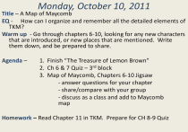 Homework – Read Chapter 11 in TKM. Prepare for CH 8-9 Quiz