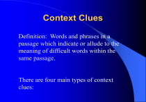 Definition: Words and phrases in a passage which indicate or allude to the meaning of difficult words within the same passage.