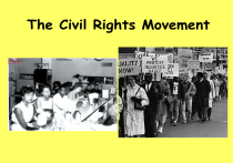 The Civil Rights Movement SS8H11 The student will evaluate the role of Georgia in the modern civil rights movement. • a. Describe major developments in civil rights and Georgia’s role during the 1940s and 1950s; include the roles of Herman Talmadge, Benjamin Mays, the 1946 governor’s race and the end of the white primary, Brown v. Board of Education, Martin Luther King, Jr., and the 1956 state flag. • b. Analyze the role Georgia and prominent Georgians played in the Civil Rights Movement of the 1960s and 1970s; include such events as the founding of the Student Non-Violent Coordinating Committee (SNCC), Sibley Commission, admission of Hamilton Holmes and Charlayne Hunter to the University of Georgia, Albany Movement, March on Washington, Civil Rights Act, the election of Maynard Jackson as mayor of Atlanta, and the role of Lester Maddox. • c. Discuss the impact of Andrew Young on Georgia. Civil Rights Leaders before the Civil Rights Movement • Booker T. Washington • W.E.B. Dubois • John & Lugenia Burns Hope • Alonzo Herndon • What did each of these people do? SS8H11 Civil Rights of the 1940 - 1950 SS8H11 Eugene Talmadge • The crazy one remember? • He represented the political corruption that plagued Georgia for many years. • He did not support the New Deal, FDR or going to war. • He also caused Georgia’s colleges to lose accreditation in the Cocking Affair • Finally, Georgians said “Enough!” and SS8H11 voted Ellis Arnall into office. Ellis Arnall Governor from 1943-1947 • A very young Governor – made a very impressive amount of reforms that helped the state. • His downfall? The Federal Court system said that the southern states could NOT use White Primaries any more. • Unlike other southern state Governors, Ellis upheld the courts decision and ended White Primaries in Georgia. • Eugene Talmadge started going around saying that Ellis was a “traitor to the White race!!!” SS8H11 End of White Primaries • The Federal government made White Primaries illegal • Several southern states decided to continue the White Primaries regardless • Ellis Arnall respected the decision and forced Georgia to abide by the Federal ruling • He ended his political career by doing this. SS8H11 “Traitor to the White race!” SS8H11 Eugene Talmadge Governor for 1 month 1947 • Runs against Ellis Arnall – saying he’s a “liberal” and “anti-white” – and wins because racism is thick. • One month passes and he dies…. • Then the Three Governor Episode of 1946 takes place… • Herman Talmadge ends up in office – Eugene's son…. SS8H11 • Watch Herman Talmadge talk about it…. Herman Talmadge Governor 1948 - 1954 • He refused to support any meaningful civil rights reforms. • He followed in his father's footsteps as a defender of the "southern way of life” • However, he proved to be an able administrator, promoting economic development, increasing the state revenues, building infrastructure, and establishing a statewide public school system. • His staunch defense of segregation did nothing to support racial equality. SS8H11 Some steps towards equality… • The end of White Primaries (only because the Feds told them too though) • Benjamin Mays • Brown vs. Board of Education • Martin Luther King, Jr. SS8H11 Benjamin Mays http://www.youtube.com/watch?v=to_vz ugUQbQ • Born in Ninety-Six, South Carolina to tenant farmers and former slaves. • He overcame overwhelming odds to become educated, earning a B.A. from Bates College in Maine, and an M.A. and PhD at the University of Chicago. http://www.youtube.com/watch?v=m5Yq • In 1940 hectgW520 became the President of Morehouse College. • There he enjoyed his greatest influence on events in the history of the United States, rising to national prominence. His most famous http://www.youtube.com/watch?v=student at Morehouse was T8RQ4Jp-mc Martin Luther King Jr. SS8H11 Brown vs. Board of Education • In the early 1950's, racial segregation in public schools was the norm across America. Although all the schools in a given district were supposed to be equal, most black schools were far inferior to their white counterparts. • In Topeka, Kansas, a black third-grader named Linda Brown had to walk one mile through a railroad switchyard to get to her black elementary school, even though a white elementary school was only seven blocks away. Linda's father, Oliver Brown, tried to enroll her in the white elementary school, but the principal of the school refused. • The NAACP was eager to assist the Browns, as it had long wanted to challenge segregation in public schools. • The Supreme Court struck down the "separate but equal" doctrine of Plessy for public education, ruled in favor of the plaintiffs, and required the desegregation of schools across America. SS8H11 http://www.youtube.com/watch?v=TTGH Ldr-iak What was Georgia’s Reaction? • The confederate flag had come to represent the “Dixiecrats” who protested against desegregation. • Georgia’s General Assembly decided to adopt a flag containing a confederate emblem in 1956 as a form of protest against desegregation of schools. SS8H11 Steps against equality… • Changing the Georgia Flag in 1956 http://www.todayingeorgiahistory.org/c ontent/georgia-flag-change SS8H11 The 1956 Legislative Session: Preserving Segregation • There will be no mixing of the races in the public schools and college classrooms of Georgia anywhere or at any time as long as I am governor....All attempts to mix the races, whether they be in the classrooms, on the playgrounds, in public conveyances or in any other area of close personal contact on terms of equity, peril the mores of the South....the tragic decision of the United States Supreme Court on May 17, 1954, poses a threat to the unparalleled harmony and growth that we have attained here in the South for both races under the framework of established customs. Day by day, Georgia moves near